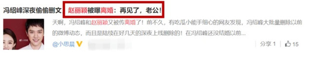 Những bài viết với dòng tít như "Phùng Thiệu Phong lén lút xoá bài trong đêm, Triệu Lệ Dĩnh bị đồn thổi đã ly hôn", "Lâm Duẫn phá nát gia đình Triệu Lệ Dĩnh - Phùng Thiệu Phong" bất ngờ xuất hiện râm ran trên MXH