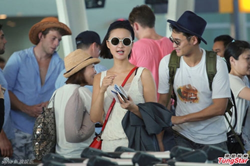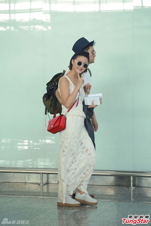 | Hôm qua 21/3, Trương Hâm Nghệ và bạn trai Viên Hoằng cùng nhau quay trở về Trung Quốc sau khi tham dự đám cưới của Ngô Kỳ Long - Lưu Thi Thi. Cô mặc váy maxi trắng, đi giày bệt, để lộ vòng hai to bất thường. Hình ảnh này khiến nhiều người nghi ngờ mỹ nhân Chuyện tình Bắc Kinh đang mang thai con đầu lòng với "Thập tam gia" của Bộ bộ kinh tâm. |