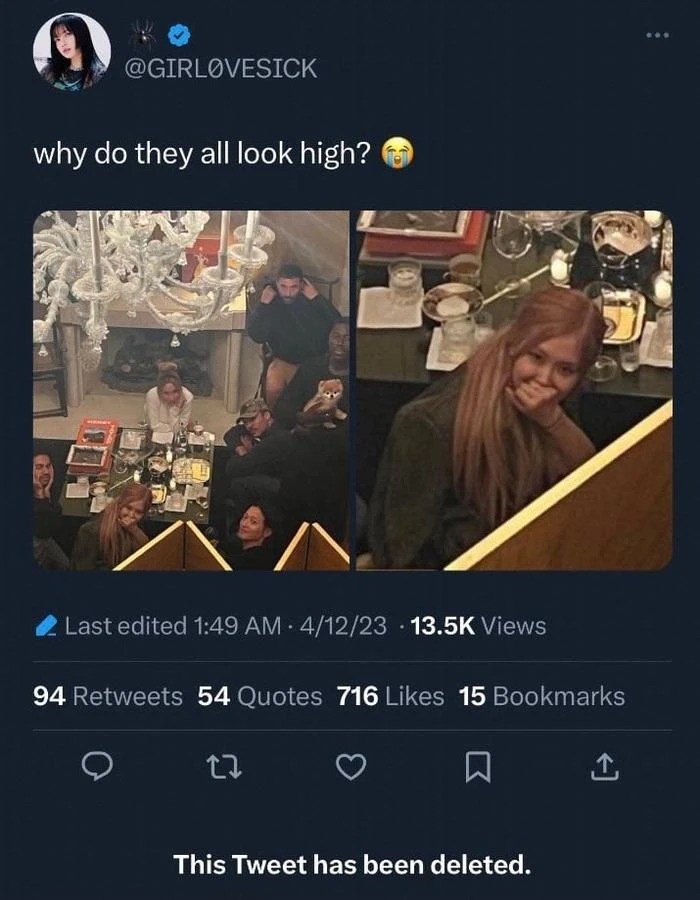 Sau khi bức ảnh này được đăng tải công khai trên mạng xã hội, rất nhiều tin đồn xoay quanh Rosé đã được lan truyền với tốc độ chóng mặt. Có người cho rằng giọng ca On The Ground đang hẹn hò với đàn anh, tuy nhiên một bộ phận khán giả đã nghi ngờ cô nàng sử dụng chất cấm vì một số đồ vật khả nghi ở trên bàn ăn có vài điểm tương đồng với dụng cụ sử dụng ma túy.