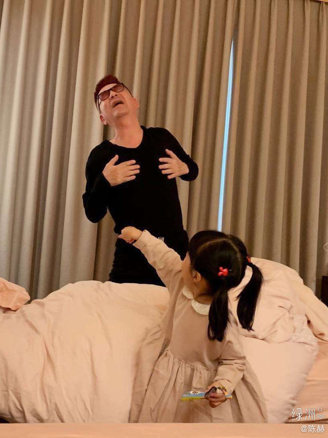 Trần Hách chia sẻ loạt ảnh bố và con gái anh chơi đùa vui vẻ đến mức không thể dừng cười. Ông nội rất biết cách chăm sóc cháu gái khi thoải mái vui đùa, "cosplay", chơi những trò từ búp bê, đồ hàng cho đến đánh đấm.