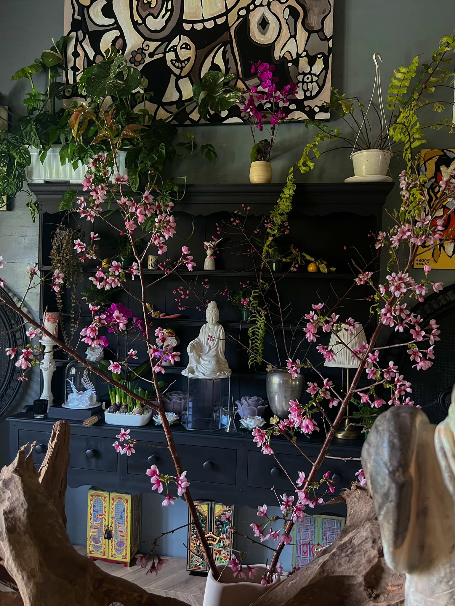 Đi kèm với hình ảnh, Lý Quí Khánh viết: "Tết đến rồi, 2024 không mượt mà như mong đợi thì chắc chắn 2025 sẽ khởi sắc nhé. Dọn phòng ngủ xong, cắm tí hoa đào và sắp cây cối cho có không khí".