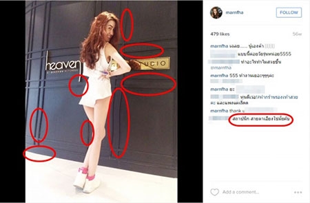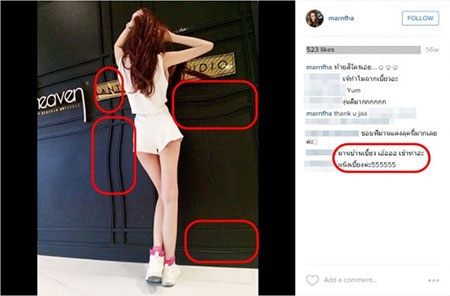 Sao nữ Thái tên là Marnfha mới đây bị công chúng "bóc mẽ" việc photoshop thái quá. Trong các hình ảnh, sao nữ Thái khoe dáng điệu đứng trước cửa gỗ. Tuy nhiên, công chúng có thể dễ dàng nhận ra, hình ảnh với thân hình thon thả, đôi chân thẳng tắp như vậy là nhờ công nghệ chỉnh sửa. Điều dễ nhận thấy là cánh cửa phía trước "bỗng dưng" bị cong, méo mó một cách đáng sợ.