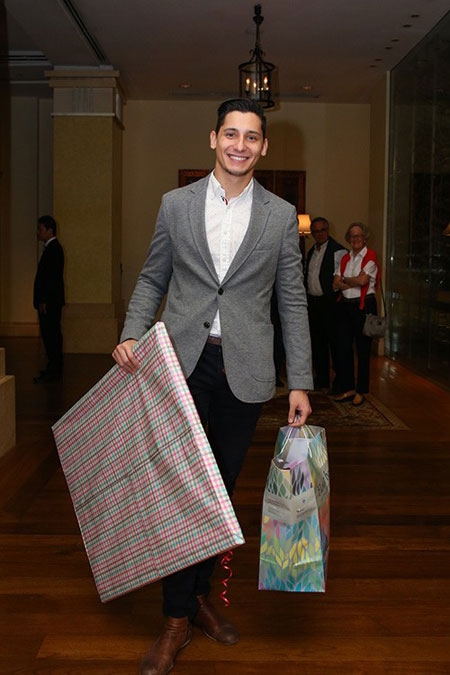 Bạn nhảy Kris - người cùng Ngân Khánh đăng quang quán quân Bước nhảy hoàng vũ 2014 cũng xách túi quà to đến mừng cô lên xe hoa. |