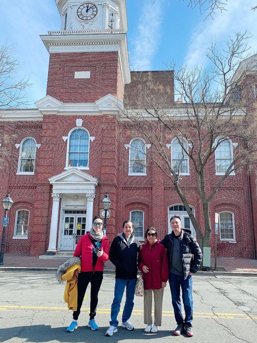 Danh ca Hương Lan cùng ông xã qua nhà người bạn dùng bữa.