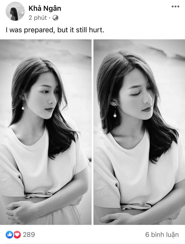 Đáng chú ý hơn, vào hôm nay hôm nay (ngày 5/8), mỹ nhân 9X bất ngờ có động thái lạ trong lúc đang nằm viện. Trên Facebok cá nhân, Khả Ngân đăng tải bức hình khuôn mặt buồn rười rượi, vóc dáng gầy gò kèm dòng trạng thái: "I was prepared, but it still hurt".(Tạm dịch: Dù đã chuẩn bị, tôi vẫn bị tổn thương).