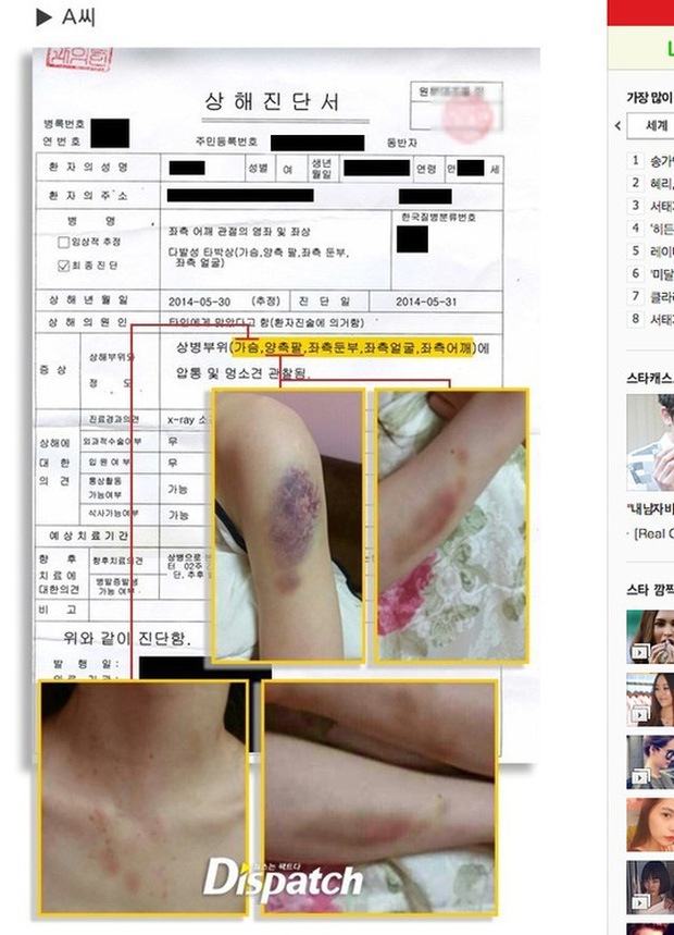 Cuộc chiến pháp lý của đôi bên bắt đầu từ tháng 8/2014, khi cô A đệ đơn kiện Kim Hyun Joong bạo hành thân thể khiến 6 chiếc xương sườn của cô bị tổn thương. Vụ việc kết thúc sau khi Kim Hyun Joong chấp nhận bồi thường cho bạn gái cũ 600 triệu won (khoảng 12 tỷ đồng) và nộp phạt thêm 5 triệu won (100 triệu đồng) vì tội hành hung.