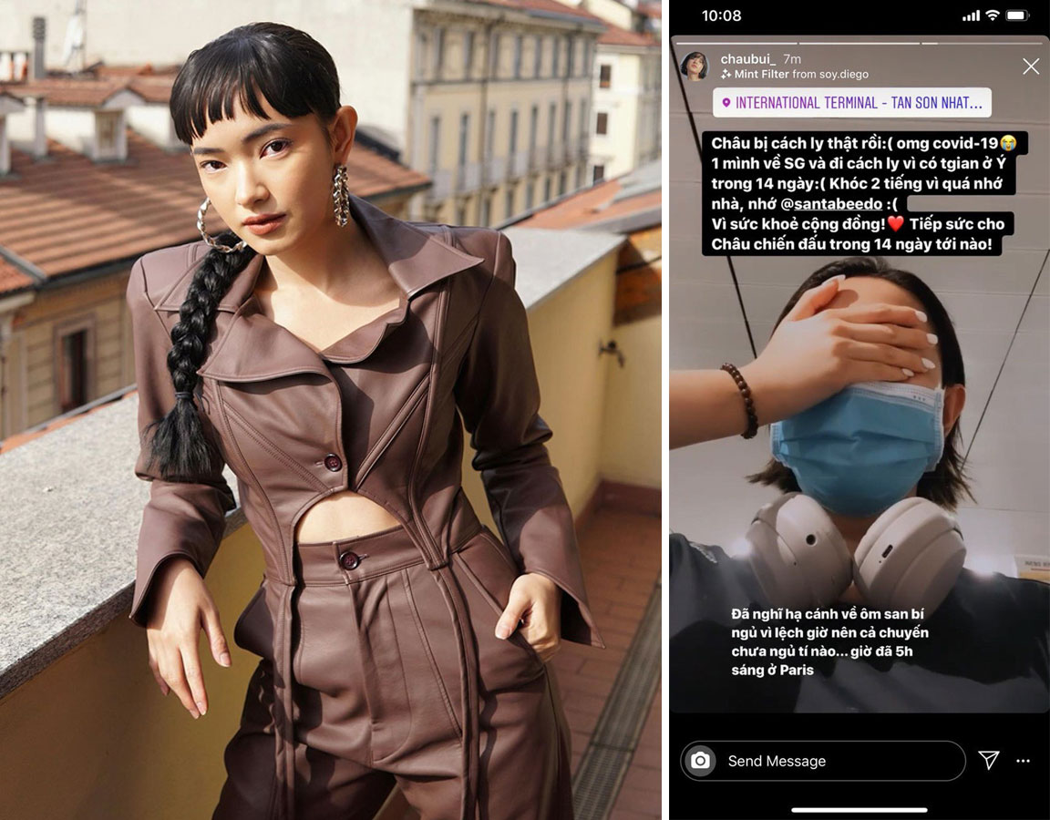 Trong khi đó, Châu Bùi vừa tới thành phố Milan của Ý để tham dự Milan Fashion Week Thu Đông 2020 và sang Pháp để tham gia Paris Fashion Week Thu Đông 2020. Sau khi trở về nước, Châu Bùi đã thông báo việc bị cách ly trên instagram cá nhân: "Châu bị cách ly thật rồi. OMG Covid-19. 1 mình về Sài Gòn và đi cách ly vì có thời gian ở Ý trong 14 ngày. Khóc 2 tiếng vì nhớ nhà, nhớ santabeedo. Vì sức khoẻ cộng đồng. Tiếp sức cho Châu chiến đấu trong 14 ngày tới nào".