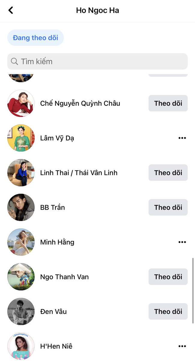 Theo đó, cư dân mạng phát hiện, trang fanpage này đã "thanh lọc" lại toàn bộ phần follow chỉ để lại vài trang và tất nhiên trang của Minh Hằng cũng bị cho "bay màu".