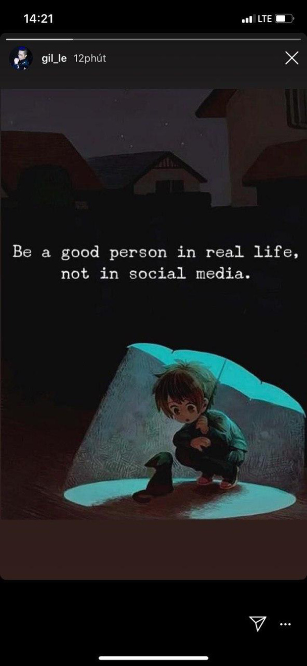 Đáng chú ý, sau khi Chi Pu chia sẻ về chuyện tình cũ, Gil Lê đã đăng tải một status đầy ẩn ý với nội dung: "Be a good person in real life, not in social media" (Tạm dịch: Hãy làm người tốt ngoài đời thật, đừng trên mạng xã hội).