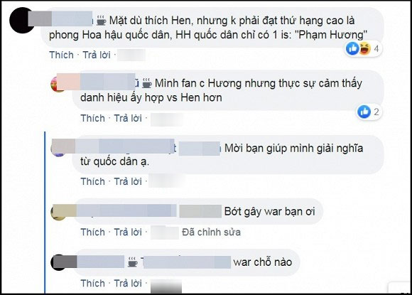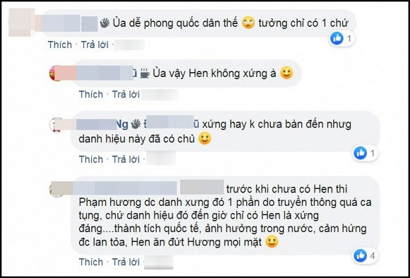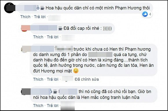 Tuy nhiên mới đây, trên một diễn đàn sắc đẹp lớn bất ngờ nổ ra một cuộc tranh cãi giữa cộng đồng fan của Phạm Hương và H'Hen Niê khi dân mạng đặt hai người đẹp lên bàn cân và so sánh xem ai mới là người xứng đáng với danh hiệu không vương miện này.
