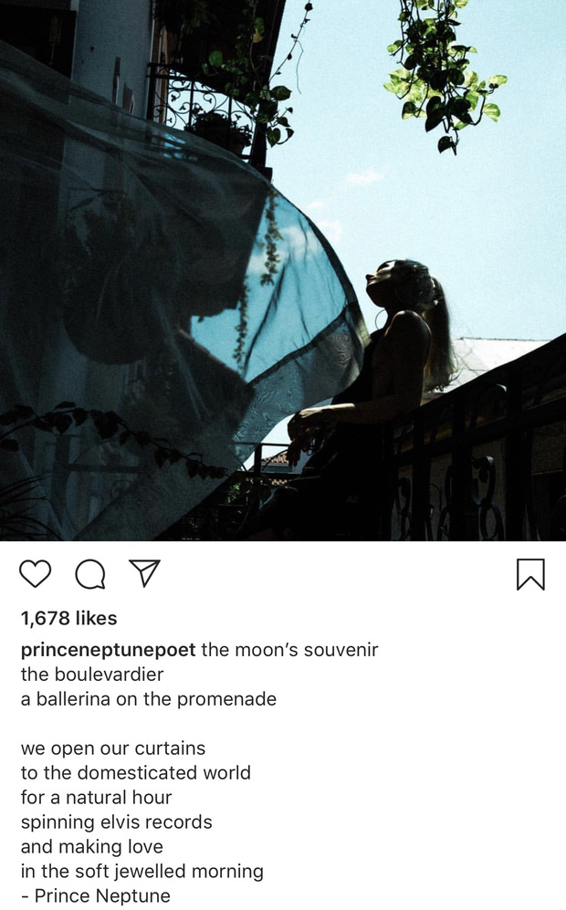 Cody đã đăng bài thơ của mình trên tài khoản phụ cùng 1 bức ảnh mà nhiều người cho rằng rất có thể là Miley đứng tại ban công, đằng sau là khoảng thời xanh trong. Nam ca sĩ viết: "Món quà từ ánh trăng, những ly cocktail, một vũ công ballet trên con phố thênh thang. Chúng ta mở rộng tâm hồn mình đến với thế giới thuần hoá ngoài kia, với những khoảng thời gian tự nhiên, nghe những bản nhạc của Elvis và tình tự trong buổi sáng nạm ngọc mềm mại".