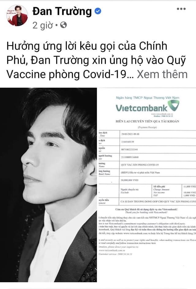 Số tiền 50 triệu mà Đan Trường ủng hộ cho Quỹ Vaccine của Việt Nam tuy không nhiều nhưng đó là cả tấm chân tình mà Đan Trường xin chia sẻ cùng nước nhà".