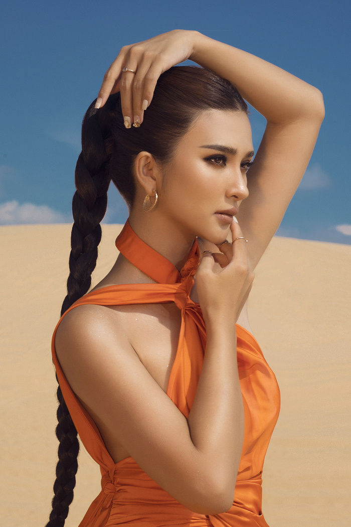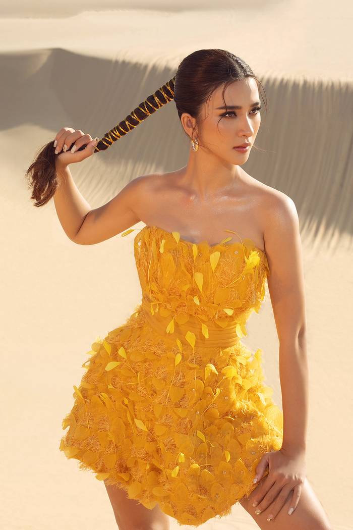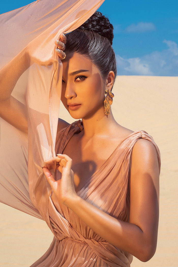 Trong dịp công tác tại miền Trung cách đây chưa lâu, chứng kiến vẻ đẹp của những đồi cát và mong muốn thúc đẩy du lịch Việt Nam, Kim Tuyến đã quyết định thực hiện bộ ảnh với concept đồi cát đầy nắng và gió.