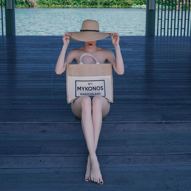 Tuy nhiên, táo bạo nhất phải kể đến bức ảnh vừa được Hồ Ngọc Hà đăng tải mới đây. Bà xã Kim Lý "nửa kín nửa hở" dùng chiếc túi để che chắn cơ thể nhưng vẫn lộ ra bờ vai nõn nà, đôi chân dài quyến rũ. Bức ảnh này cũng khiến người nhìn dễ hiểu nhầm Hồ Ngọc Hà đang nude nhưng thực chất là cô đang mặc bikini phía sau chiếc túi lớn.