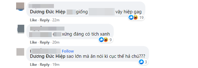 Ở dưới bài đăng của Hiệp Gà, đông đảo cộng đồng mạng nhanh chóng để lại những bình luận chỉ trích phát ngôn tục tĩu và thiếu văn hóa trên: "Không xứng đáng có tích xanh", "sao lớn mà ăn nói kì cục thế hả chú??"...