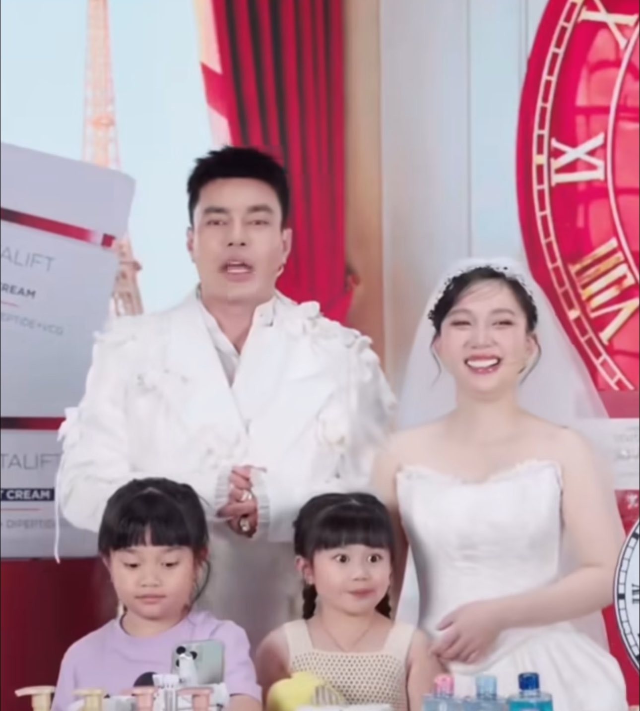 Đặc biệt trong phiên livestream bán hàng gần nhất, Lê Dương Bảo Lâm và vợ đã mặc hẳn đồ cưới, một lần nữa khẳng định hôn nhân bền chặt giữa hai người. Anh còn chia sẻ ảnh cùng bà xã trên mạng xã hội và viết: "Đập tan tinh đồn này nọ….Mời cả nhà vào đây….".