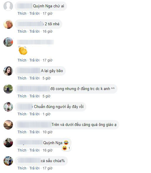 Động thái này của Việt Anh đã nhanh chóng thu hút sự chú ý của bạn bè và cư dân mạng. Nhiều người đã phát hiện ra điểm chung giữa bóng khuôn mặt cũng như vóc dáng của cô gái trong ảnh với diễn viên Quỳnh Nga và để lại bình luận: "Chuẩn Quỳnh Nga", "Quỳnh Nga chứ ai", "Cao Thanh Lâm và cá sấu chúa", "Cái dáng với cái mặt kia chuẩn Quỳnh Nga rồi còn gì"...