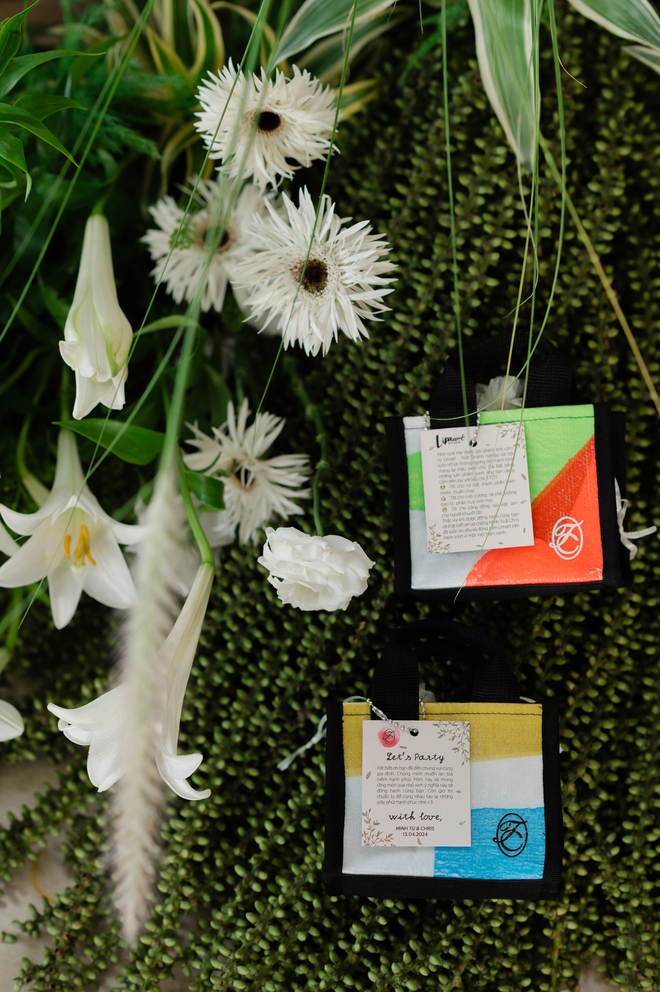 Có thể thấy, từ thiệp cưới đến túi quà mang lối sống "xanh" nhầm tri ân khách mời dành thời gian đến chung vui tại tiệc cưới của Minh Tú và Chris đã được cô gửi gắm nhiều tâm tư, tình cảm và thông điệp ý nghĩa.