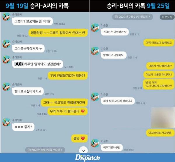 "Anh đang nghĩ cách đong đưa người khác. Thế thì anh đang đùa giỡn với cảm xúc của đối phương. Anh biến họ thành kẻ ngốc đấy à. Chị ấy tin rằng anh là bạn trai của chị ấy. Anh luôn coi thường phụ nữ thế sao?". Cô B chất vấn Seungri sau khi phát hiện bị lừa, sau đó trở về Hàn Quốc vào ngày 28/9.