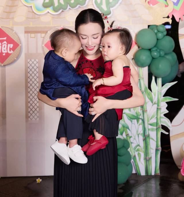 Trước ngày kỷ niệm ý nghĩa của cặp song sinh, nữ diễn viên đã hạnh phúc bày tỏ: "Mẹ đã háo hức bao đêm, tưởng tượng ra bữa tiệc thôi nôi đầu tiên của hai con – cột mốc đáng nhớ, đánh dấu tròn một năm các con đến bên gia đình mình, mang theo biết bao tiếng cười và hạnh phúc! Mẹ mong bữa tiệc nhỏ này sẽ là lời chào đầu đời thật rực rỡ dành cho hai con, tràn đầy ấm áp và yêu thương".