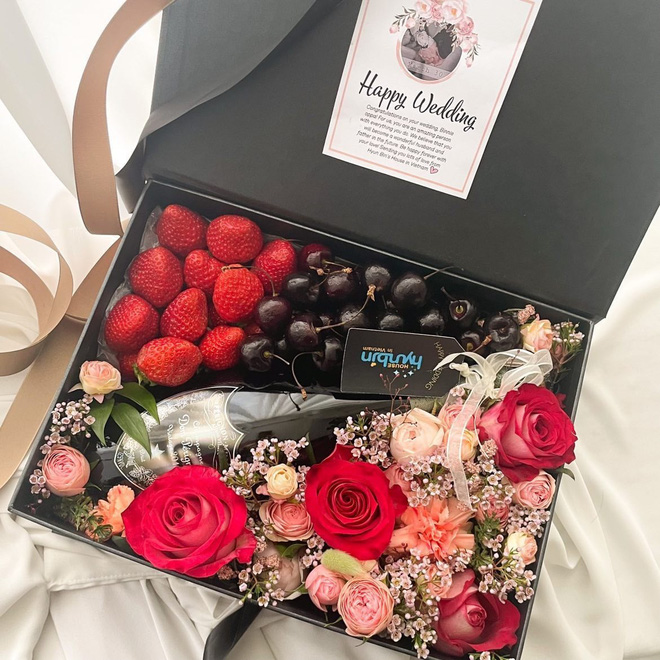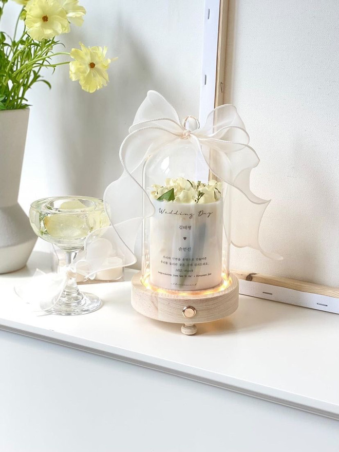 Trước ngày trọng đại, fan Việt đã gửi những món quà đặc biệt đến cặp đôi tân lang - tân nương, gồm hoa, quả, rượu vang, mũ đôi, nến thơm,... Đặc biệt còn có 2 bình cắm hoa pha lê hình đôi chim đã được gửi tới cô dâu chú rể.