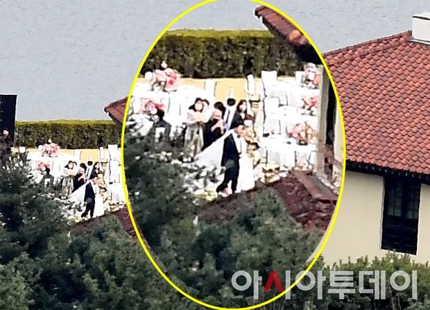 Ngay lúc này, những hình ảnh đầu tiên của hôn lễ đã được hé lộ. Đài JTBC đã đăng tải ảnh thiệp cưới độc quyền, theo đó siêu đám cưới sẽ diễn ra vào lúc 16h chiều chứ không phải 11h trưa như thông tin trước đó. Hình ảnh phía an ninh nghiêm ngặt phía bên ngoài khách sạn Sheraton Grand Waterhill cũng được lan truyền trên mạng xã hội.