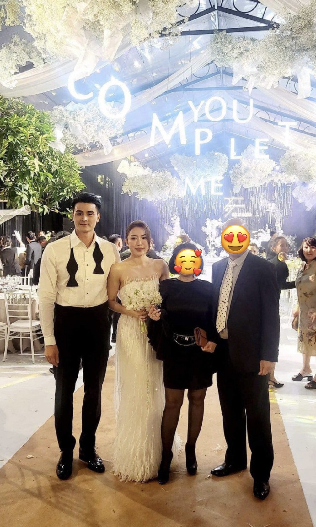 Hôn lễ được diễn ra riêng tư tại Đà Lạt trước sự chứng kiến gia đình, bạn bè thân thiết. Buổi lễ được tổ chức hoành tráng với concept trang trí chủ đạo là màu trắng kem.