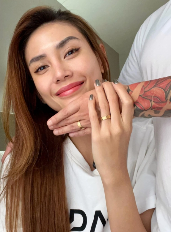 Theo đó, cô đã khoe bức ảnh đeo nhẫn ở ngón áp út cùng bạn trai đang sinh sống và làm việc ở Mỹ, kèm theo dòng trạng thái: "Hơn 5 năm bên nhau. Đã đến lúc em phải hỏi câu này: 'Anh sẽ là chồng em đến hết cuộc đời được không?'. Sáng nay chốt được cái deal nhanh nhất 35 năm nay".