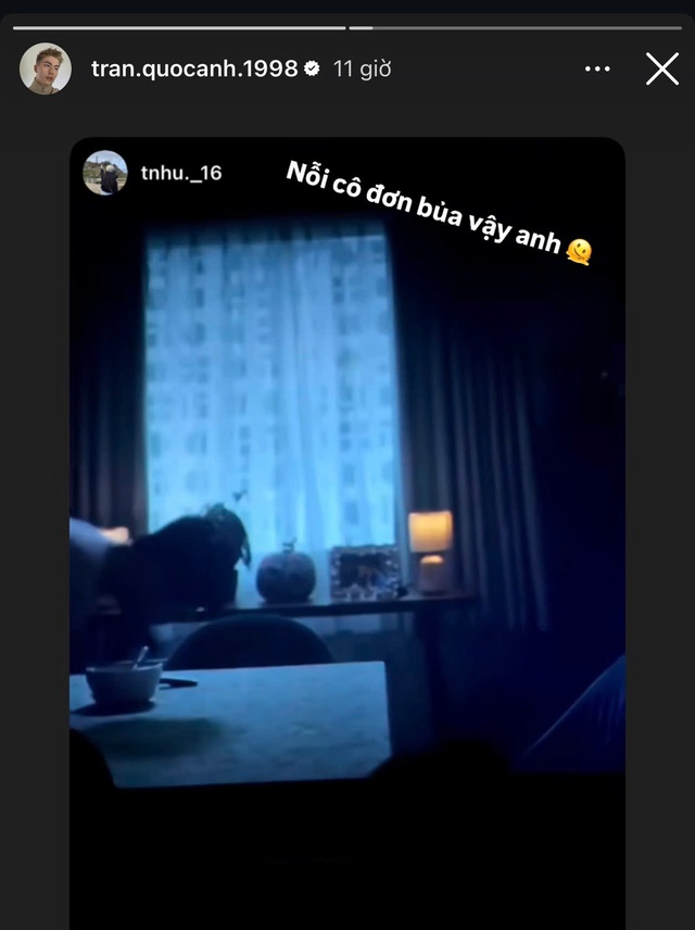 Giữa lúc mối quan hệ của cặp đôi nhận được sự quan tâm, động thái của MLee và Quốc Anh nhận được sự chú ý của netizen. Trên story trang cá nhân, nam diễn viên mới đây đã chia sẻ lại khoảnh khắc trong bộ phim Bộ tứ báo thủ và viết dòng chú thích: "Nỗi cô đơn bủa vây anh".