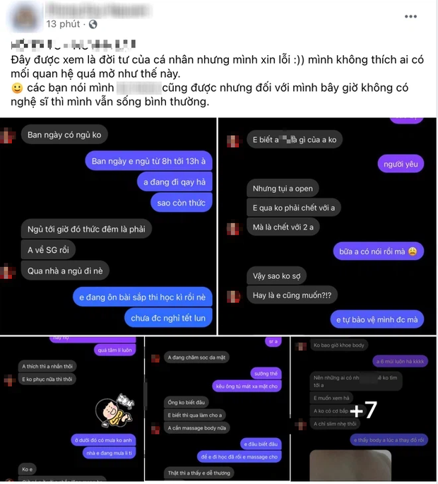 Chia sẻ về bài viết này, chàng trai tên P viết: "Đây được xem là đời tư của cá nhân nhưng mình xin lỗi, mình không thích ai có mối quan hệ quá mở như thế này. Các bạn nói mình ** fame cũng được nhưng đối với mình bây giờ không có nghệ sĩ thì mình vẫn sống bình thường". Bài viết này đang khiến dân tình vô cùng xôn xao. Rất nhiều ý kiến trái chiều đã được để lại. Tuy nhiên, đây mới chỉ là lời tố một chiều, thực hư thế nào vẫn cần người trong cuộc lên tiếng.
