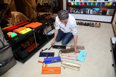 Không chỉ có túi xách mà từ quần áo, khăn quàng, giày, phụ kiện của Mr Đàm cũng đều “dát” hàng hiệu đắt giá.
