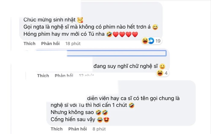 Đáng chú ý, phía dưới bài đăng, bên cạnh những lời chúc mừng dành cho thành viên công ty M-TP. Số đông khán giả còn lại kịch liệt phản ứng. Họ đồng loạt bày tỏ sự khó hiểu đối với danh xưng nghệ sĩ của Hải Tú. Nhiều khán giả đã tỏ ra bất bình, thậm chí là lên án gay gắt. Theo họ, danh xưng cao quý như vậy bây giờ cứ thích gọi là gọi, dù không cống hiến được gì cho nghệ thuật nước nhà vẫn "nghiễm nhiên" trở thành nghệ sĩ, hình như đối với một số người, danh xưng ấy hiện đang "quá rẻ".