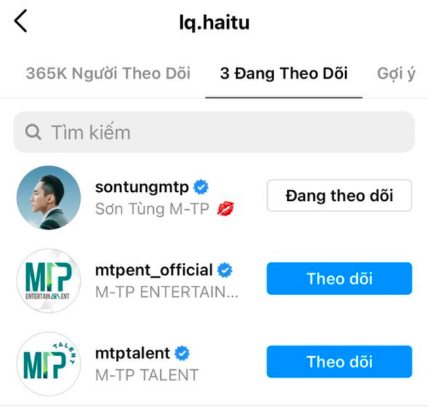 Sơn Tùng M-TP cũng từng được dân mạng ca ngợi như 'tổng tài soái ca chung tình trong truyền thuyết' khi chỉ follow Thiều Bảo Trâm suốt một thời gian dài. Tuy nhiên, hình tượng này đã 'sụp đổ' khi 'Sếp' không chỉ follow thêm Hải Tú mà còn unfollow Thiều Bảo Trâm.