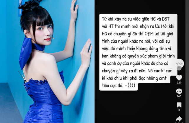 Comment chĩa mũi dùi vào giới tính của Hương Giang nói trên như thể việc cô là người chuyển giới chính là nguồn cơn gây ra mọi lỗi lầm, thị phi. Những bình phẩm xúc phạm, kỳ thị đó nhiều đến mức chưa nói đến Hương Giang hay người thuộc cộng đồng LGBT+, cũng đã có không ít người dùng mạng xã hội cũng cảm thấy bức xúc, khó chịu và tổn thương khi đọc được.