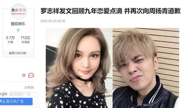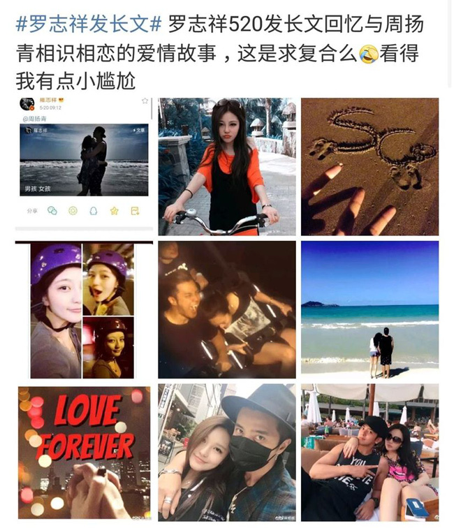 Ngày 20/5, đúng dịp Lễ tình nhân của Trung Quốc, La Chí Tường đã đăng bài viết hồi tưởng lại hành trình tình yêu kéo dài 9 năm cùng bạn gái cũ Châu Dương Thanh.