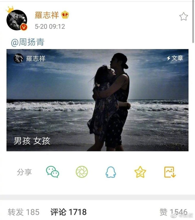 Theo đó, do 520 đồng âm với câu "Anh yêu em" trong tiếng Trung nên 20/5 được coi là ngày lễ tình nhân ở quốc gia này. Không những đăng bài viết dài cùng những hình ảnh tình tứ trước nay chưa từng được tiết lộ giữa cả hai, La Chí Tường còn gắn cả tên bạn gái cũ Châu Dương Thanh. "Lần này tôi hứa với bạn, hãy để tôi chia sẻ câu chuyện của chúng tôi với bạn", La Chí Tường viết. Đi kèm với dòng trạng thái trên là bài viết dài về quá trình yêu đương của cả hai, từ ngày tháng cho tới hình ảnh cụ thể đều được La Chí Tường công khai.