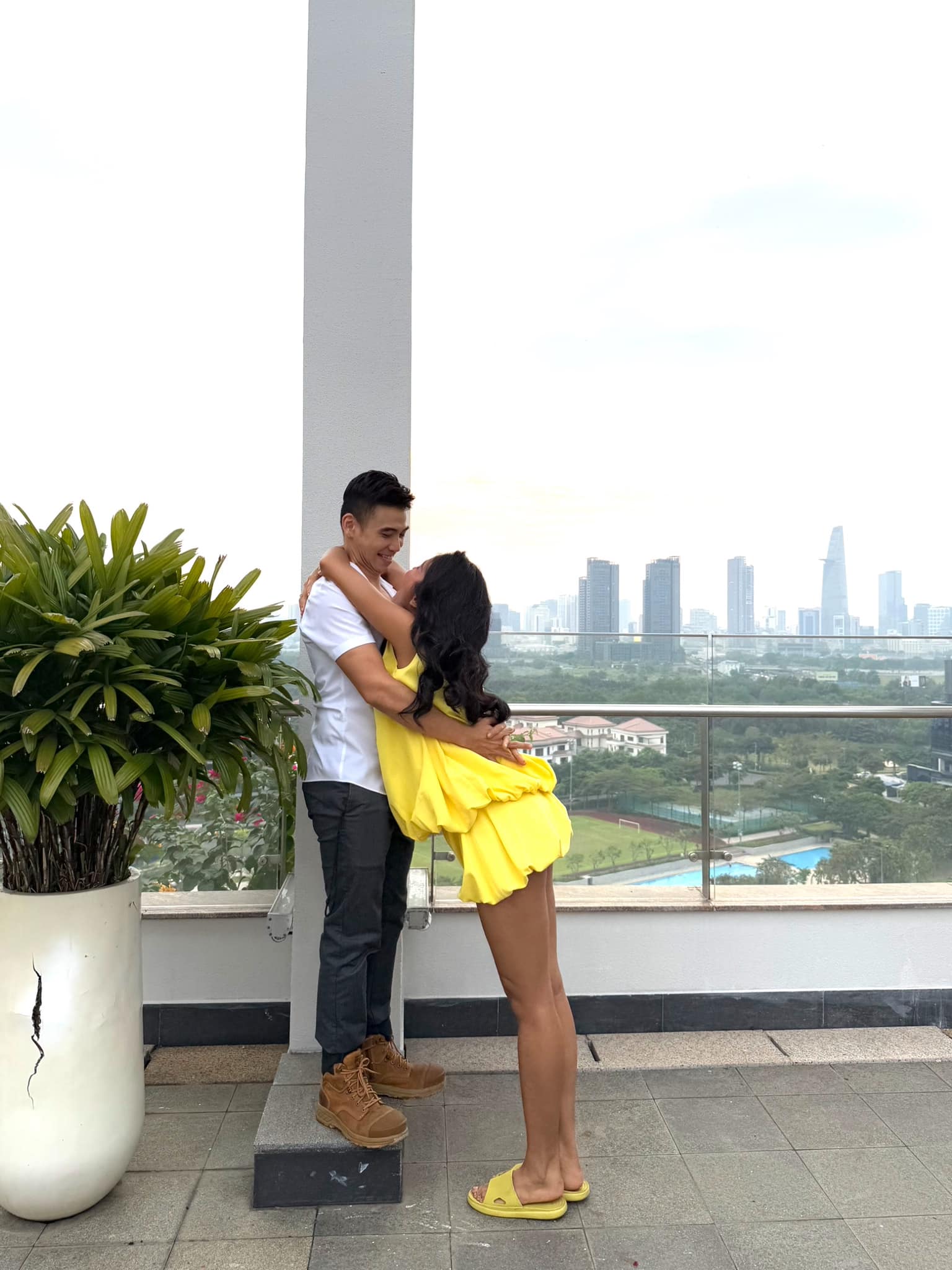Trên trang cá nhân, Tuấn Khôi cũng không ngần ngại công khai sự thật hậu trường, khi anh phải đứng lên một bậc thềm cao để "ăn gian" chiều cao. Trong khi đó, H'Hen Niê chủ động nghiêng người thấp xuống để tạo nên một khung hình lãng mạn. Thực tế, H'Hen Niê từ lâu đã nổi tiếng với chiều cao vượt trội, còn bạn trai cô dù không thấp nhưng vẫn có sự chênh lệch nhất định khi đứng cạnh nàng hậu. Khoảnh khắc này khiến fan không khỏi bật cười vì quá đáng yêu, đặc biệt là khi chính chủ cũng thoải mái chia sẻ mà không hề che giấu.