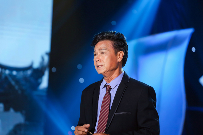 “Tôi không phải diễn viên điện ảnh. Tôi là ca sĩ, là vua nhạc đỏ. Tại vì tôi hay xuất hiện trên tivi, truyền hình, truyền thông vào các dịp lễ, tôi hay hát những ca khúc truyền thống. Tôi cứ cạnh tranh, cứ ganh tị tại sao các bạn trẻ không nghe tôi hát nhiều. Tôi tức! Rồi tôi được đạo diễn Bùi Thạc Chuyên mời đóng bộ phim Địa đạo: Mặt trời trong bóng tối. Đầu tiên tôi không dám, tôi từ chối. Sau rồi tôi tìm hiểu về đạo diễn, đọc kịch bản, tự nói với bản thân: Mày không nhận là mày ngu! Nên tôi nhận ngay và giờ thì thân với đạo diễn luôn”.