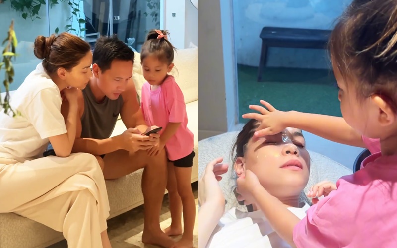 Việc duy nhất của Hà Hồ là nằm trên sofa thư giãn, Kim Lý và hai bé Lisa - Leon đã đem mặt nạ đến tận nơi, đắp cẩn thận lên mặt cho cô. Trong thời gian đó, cả nhà vui vẻ trò chuyện, chơi đùa với nhau. Không khí gia đình vui vẻ, ấm cúng của Hồ Ngọc Hà bên chồng con khiến ai nhìn vào cũng ngưỡng mộ.