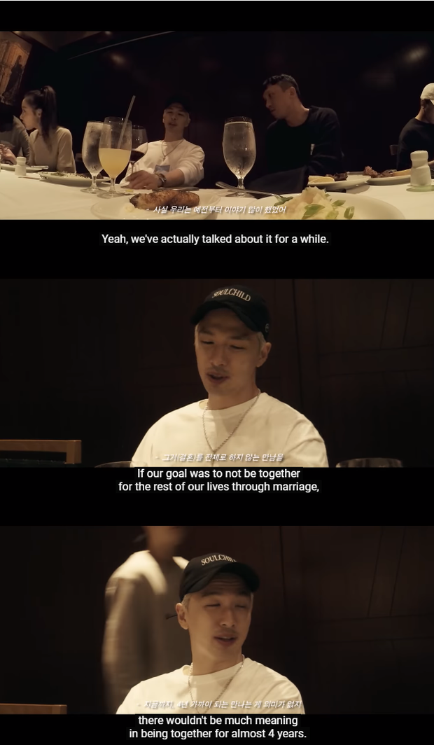 Khi được người bạn hỏi về kế hoạch kết hôn, Taeyang cho biết: "Chúng tôi đã nói rất nhiều về điều này. Nếu như không định dành cả quãng đời còn lại bên nhau thì đã không hẹn hò đến 4 năm. Nếu như không phải là cô gái này, thì tôi đã không nghĩ đến chuyện kết hôn".