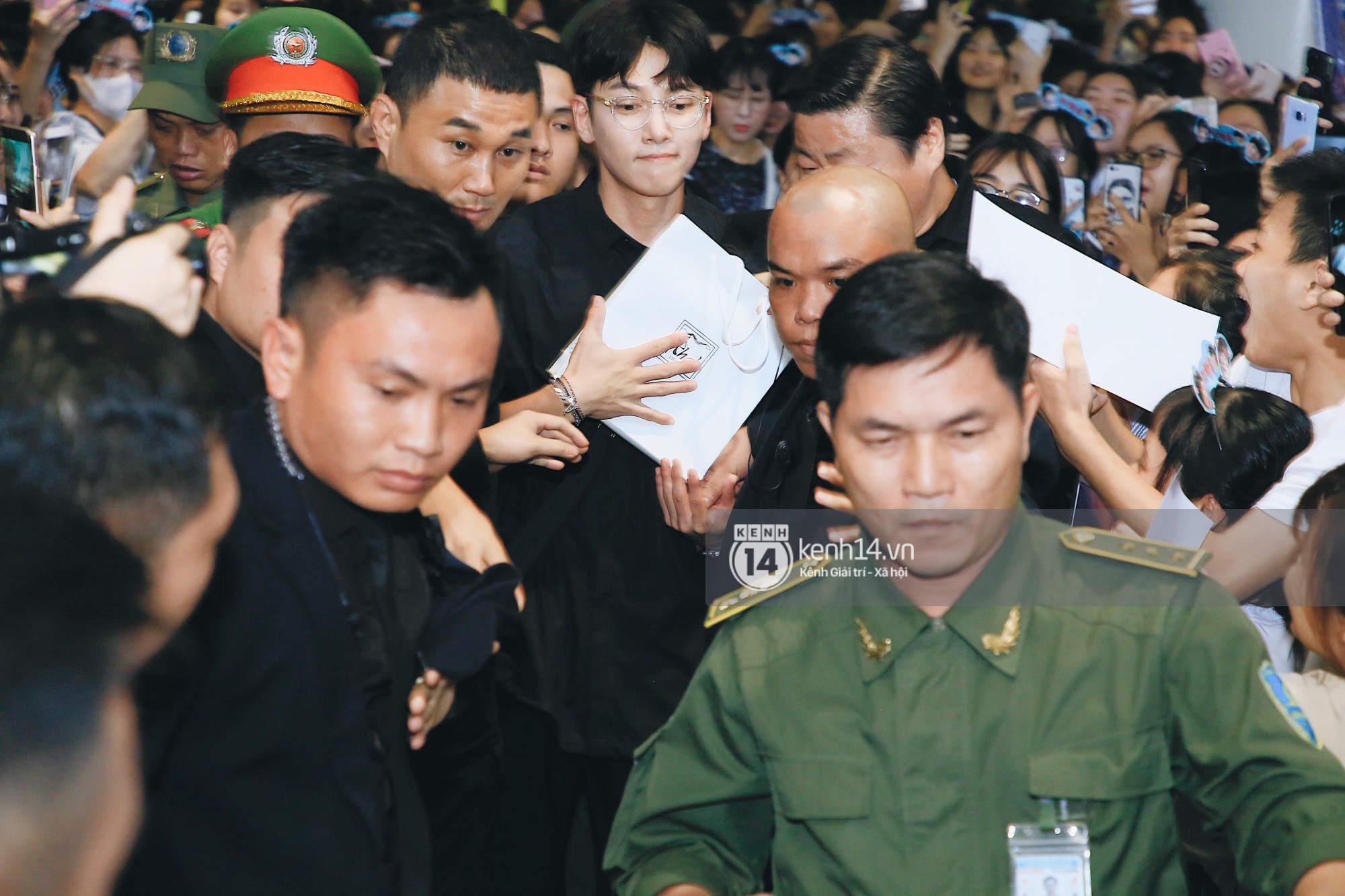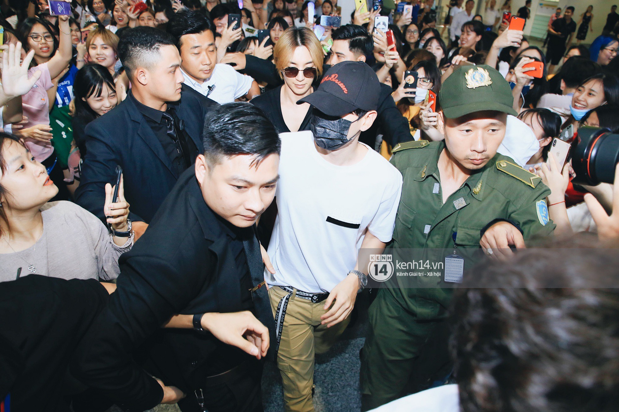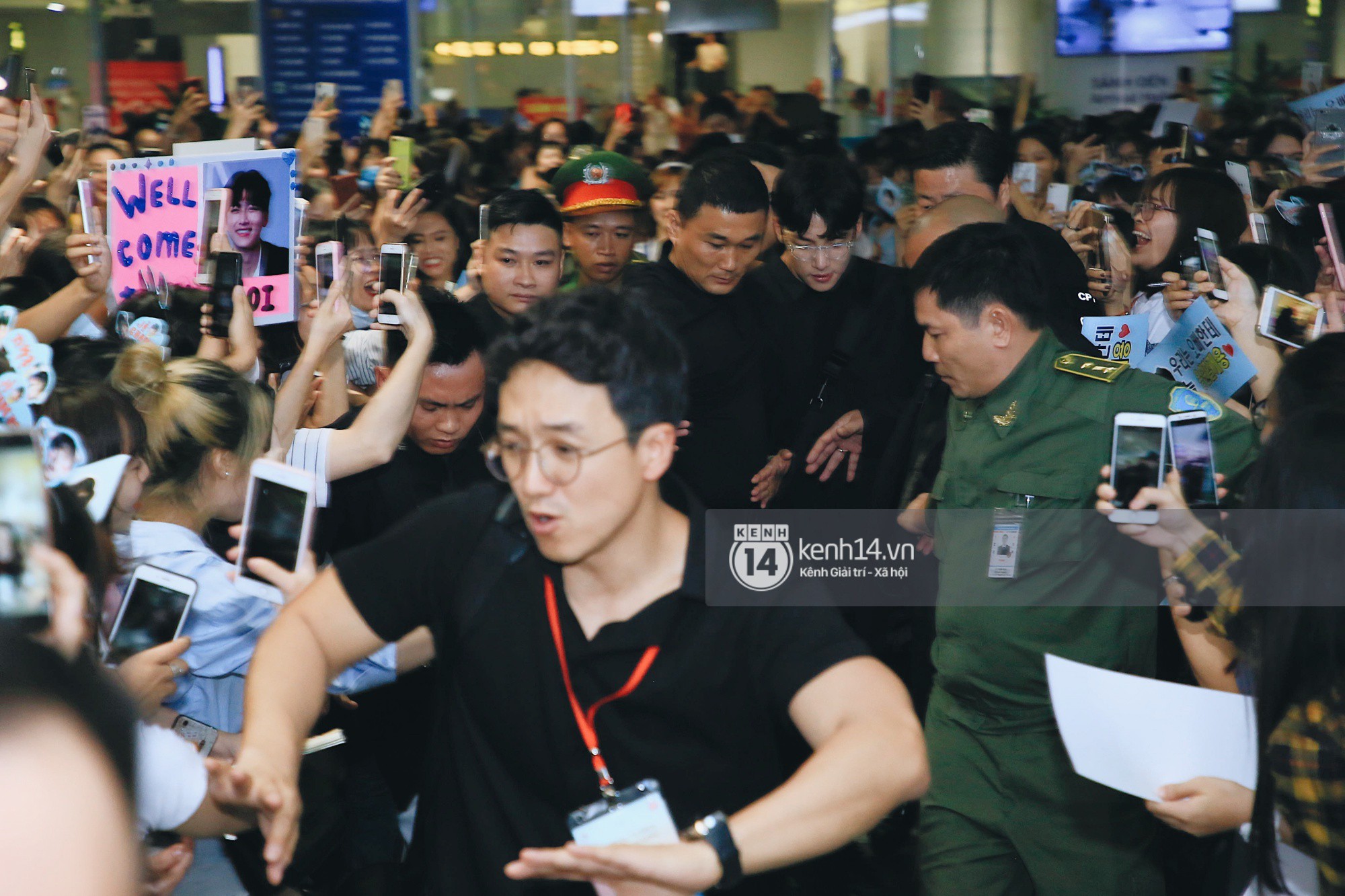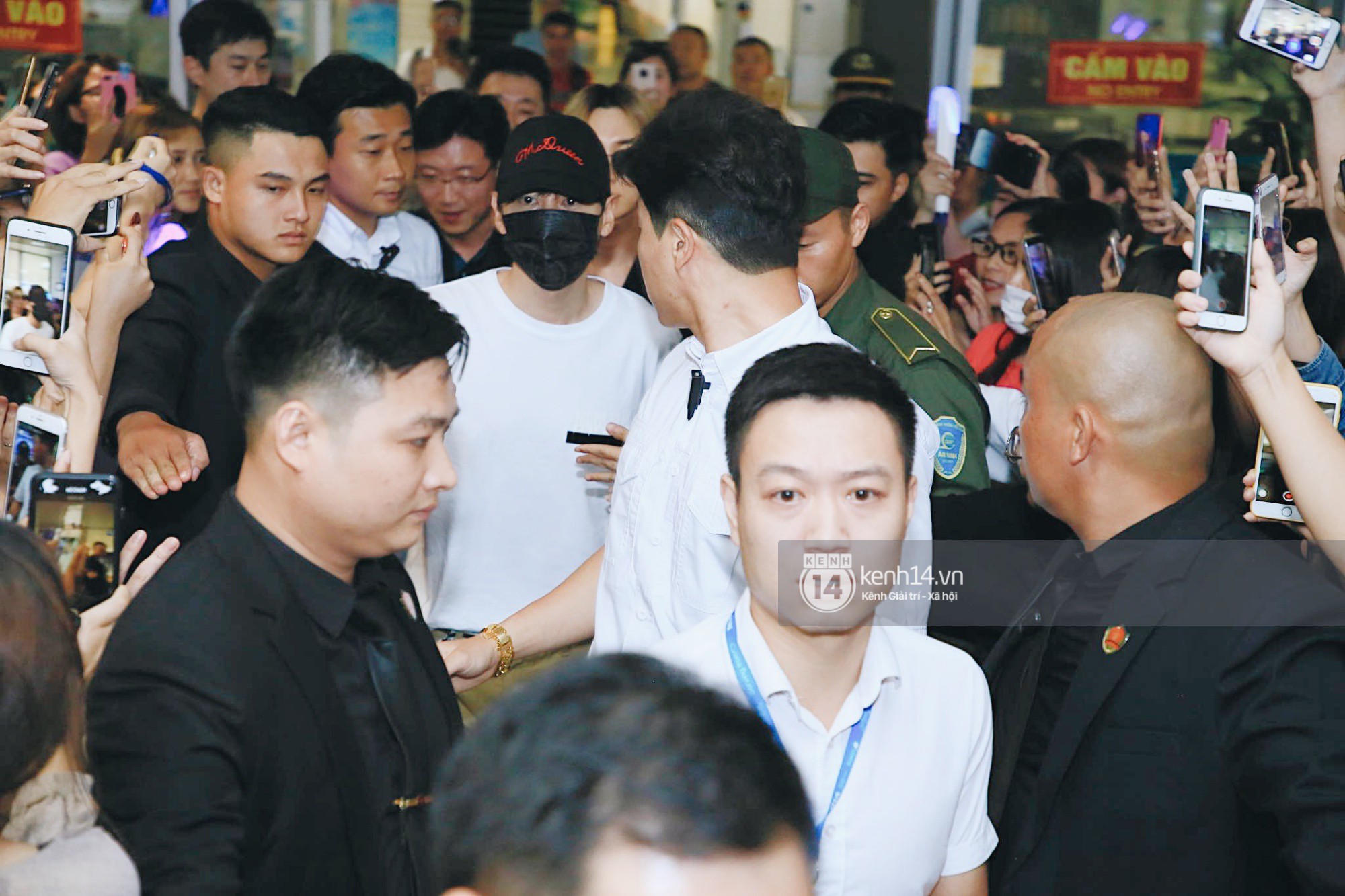Mặc dù bị đám đông fan vây kín và đùn đẩy mạnh bạo, nhưng Ji Chang Wook vẫn xuất hiện với diện mạo bảnh bao, xứng danh nam thần đẹp trai nhất nhì làng điện ảnh Hàn. Đáng chú ý nhất là thái độ của nam tài tử trong khung cảnh không thể náo loạn hơn: vừa cười dịu dàng vừa biểu cảm đầy dễ thương khi nhận được quà của fan chứ không sợ hãi hay nhăn nhó như các ngôi sao xứ kim chi gặp phải trường hợp tương tự trước đây. Đến Việt Nam muộn hơn, Leeteuk và Eunhyuk (Super Junior) vẫn được lượng fan đông không kém đón chào, thậm chí còn có phần khủng hơn. Tuy nhiên vì chuyến bay dài nên các chàng trai thanh xuân bịt mặt kín, di chuyển nhanh vào xe.