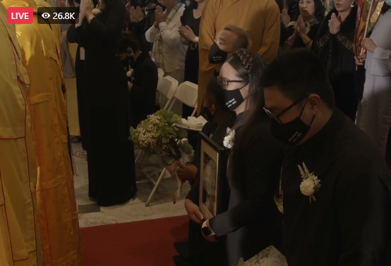 2 giờ 49 (giờ Việt Nam): Con gái Phi Nhung cùng người thân cùng các sư thầy làm lễ.