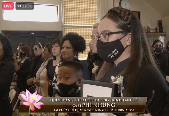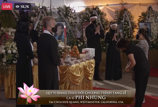 Đúng 11 giờ ngày 12/10 (giờ địa phương), tang lễ của Phi Nhung đã được bắt đầu tại chùa Huệ Quang, thuộc TP. Santa Ana, bang California, Mỹ với sự có mặt của toàn bộ người thân cũng như bạn bè, đồng nghiệp thân thiết với cố ca sĩ.