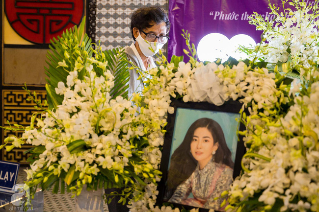 Trong suốt đám tang, gia đình cố diễn viên Mai Phương luôn gắng gượng đón tiếp khách. Bố của cố diễn viên lặng lẽ đứng trước quan tài con gái, còn mẹ cô không nén được nước mắt khi có người động viên.