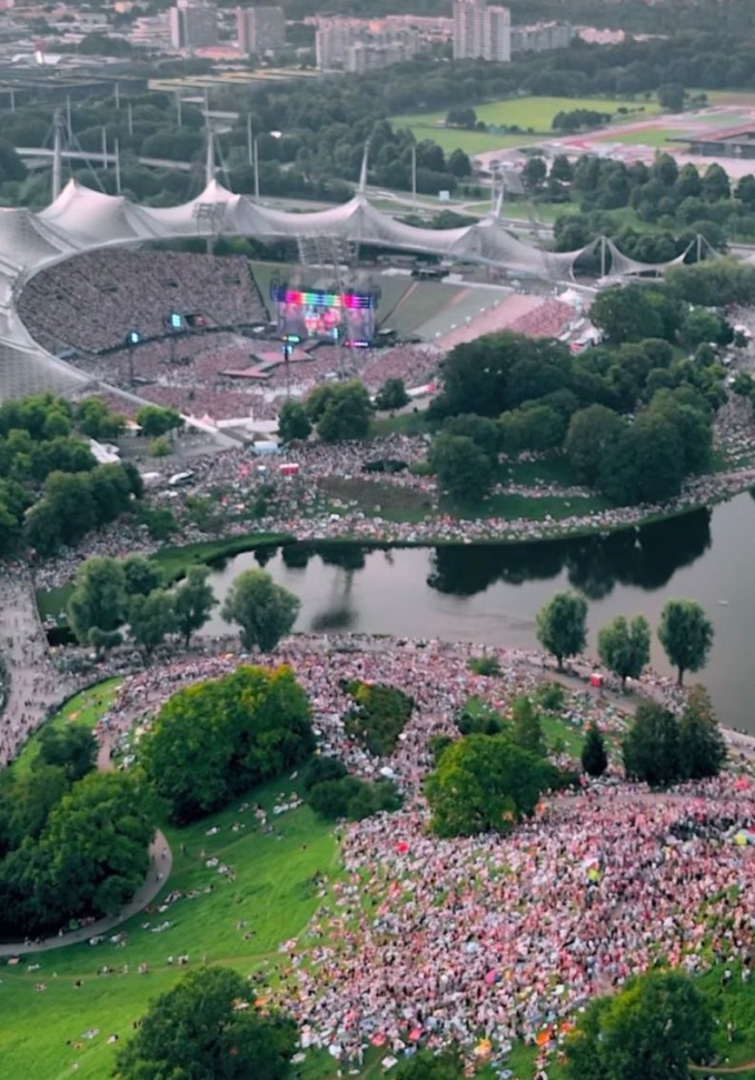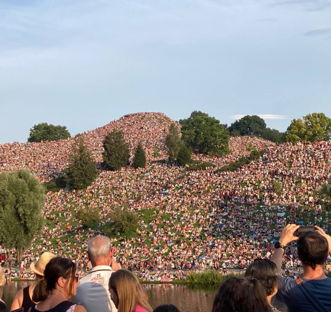 Cơn bão The Eras Tour của Taylor Swift đang càn quét khắp châu Âu và chưa có dấu hiệu hạ nhiệt. Mới đây nhất, nữ ca sĩ đình đám gây nên cơn sốt chưa từng có khi biểu diễn tại Munich, Đức, tất cả là vì 1 cảnh tượng cực lạ. Bên cạnh 74.000 fan lấp đầy sân vận động, Taylor Swift còn thu hút đến đến 50.000 người "xem chùa" từ ngọn đồi bên cạnh sân. 50.000 fan "xem chùa" này đã tạo nên cảnh tượng ấn tượng hiếm thấy. Họ cùng nhau tụ tập, ca hát, nhảy múa theo nhạc của nữ ca sĩ sinh năm 1989.