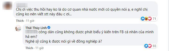 Chia sẻ của Thái Thùy Linh ngay lập tức thu hút sự chú ý của dư luận. Trong bài đăng của cô, dân mạng chia làm 2 phe tranh cãi: người ủng hộ nữ ca sĩ dám lên tiếng bày tỏ quan điểm trong khi nhiều nghệ sĩ im lặng, người lại cho rằng Thái Thùy Linh không nên đưa ra bất kỳ phát ngôn nào về đồng nghiệp ở thời điểm này bởi mọi việc vẫn còn chưa thật sự rõ ràng.
