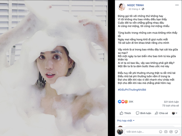 Trước phản ứng từ dư luận, Ngọc Trinh cũng bất ngờ có động thái đáp trả trên trang cá nhân. Sử dụng lời bài hát để thể hiện chính kiến, "vòng eo 56" khẳng định mình đã khác trước và không dễ dàng bị lung lay bởi những thị phi. "Đừng gọi tôi với những thứ không hay, cuộc đời ta vốn chẳng giống nhau đâu!" Phải chăng, Ngọc Trinh đang muốn nhắn gửi tới Ngân 98 rằng cả hai không cùng đẳng cấp để có thể đem ra so sánh như vậy? Liên hệ với Ngân 98, cô nàng vẫn một mực khẳng định: "Tôi thấy tôi nói đúng, không cà khịa ai hết”.