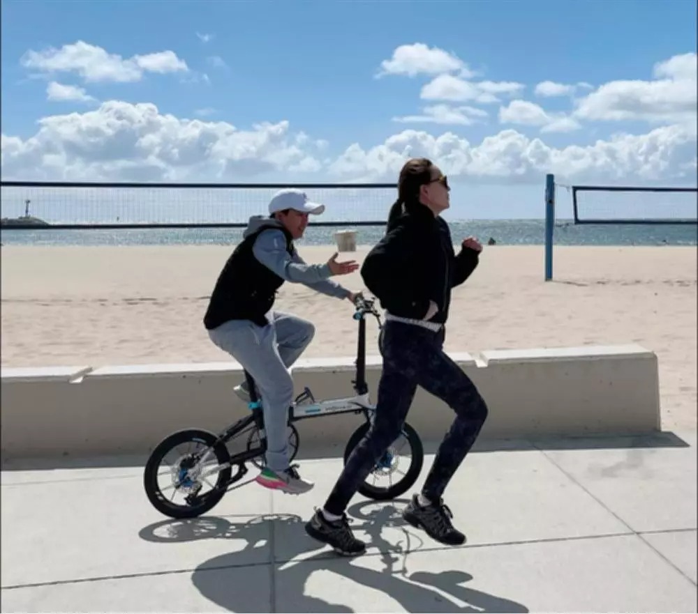 Mặc dù bức ảnh khá mờ song không khó để khán giả nhận ra nhạc sĩ Phương Uyên. Trong ảnh, Thanh Hà chạy bộ còn người tình đạp xe theo cùng.