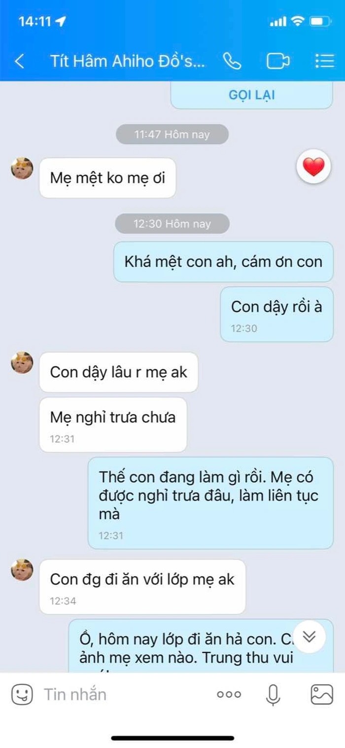 - Mẹ ơi, thế mẹ căn cứ vào đâu, hay mẹ đang so với con nhà ai thì mẹ cho con biết, để con xem con phải làm gì nữa. Còn bình thường với bọn con trai chúng con chắc không có nhiều thằng nhớ và thương mẹ nên nhắn tin hỏi thăm khi mẹ đi làm đâu, mẹ cứ hỏi các cô xem. Con không biết con còn phải làm gì nữa thì mẹ mới thấy đủ.