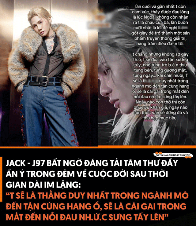 Điều đáng chú ý, trước khi đâm đơn kiện Thiên An, vào tối 21/5, Jack từng có bài đăng về quá khứ, những nỗi đau trong sự nghiệp. Cụ thể, nam ca sĩ thừa nhận từ lâu bản thân đã trở nên chai lì cảm xúc “Lần cuối và gần nhất tôi còn cảm xúc, thấy được đau lòng là lúc ngoại không còn nhận ra tôi là cháu của bà”.